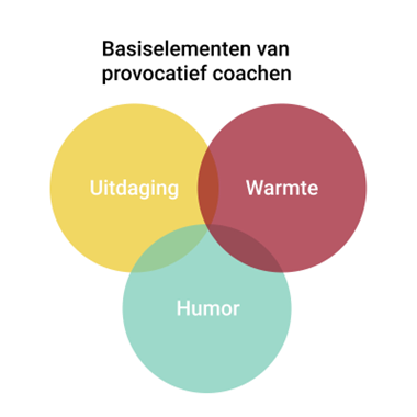 Provocatief Coachen gebeurt vanuit de grondhouding: Warmte-humor-uitdaging.